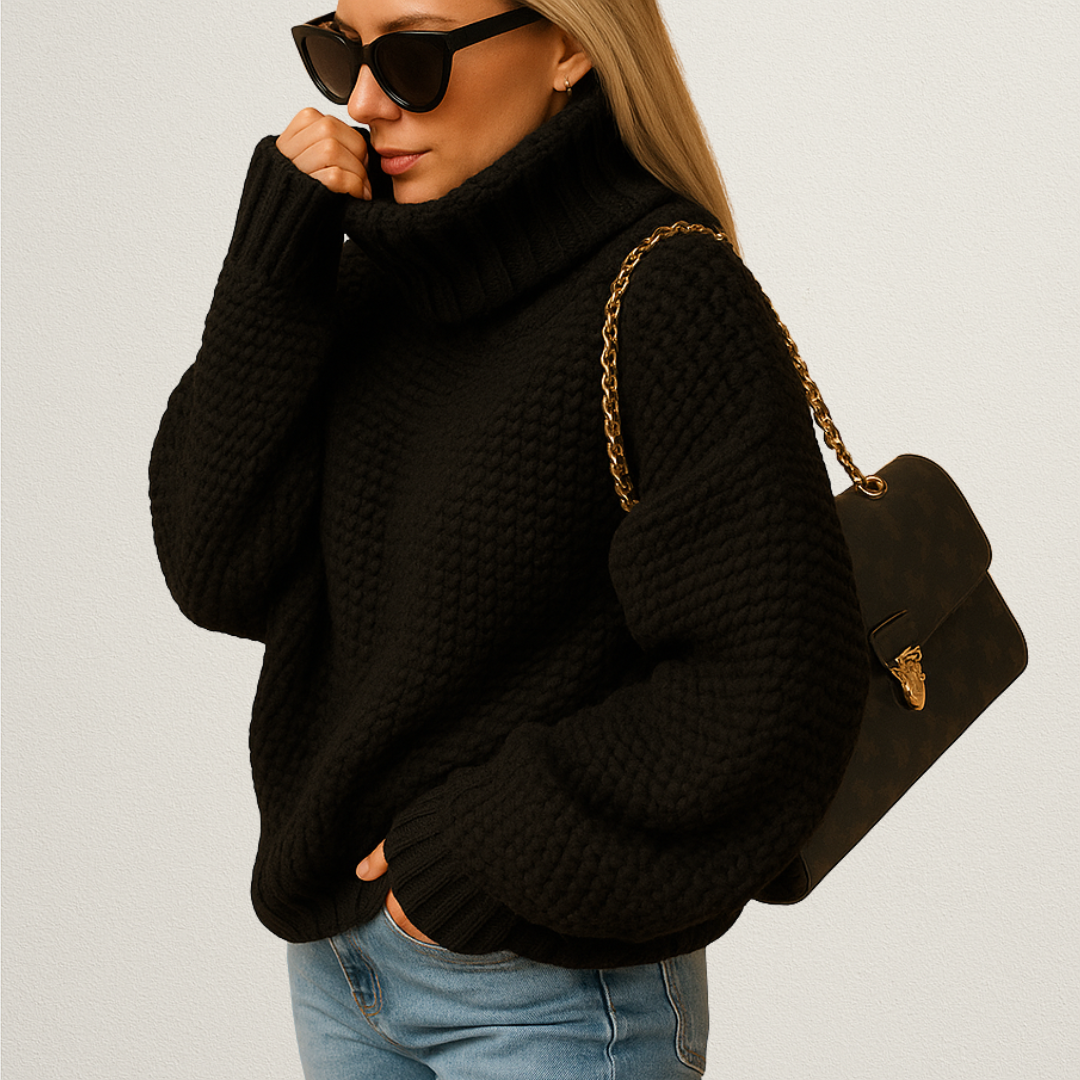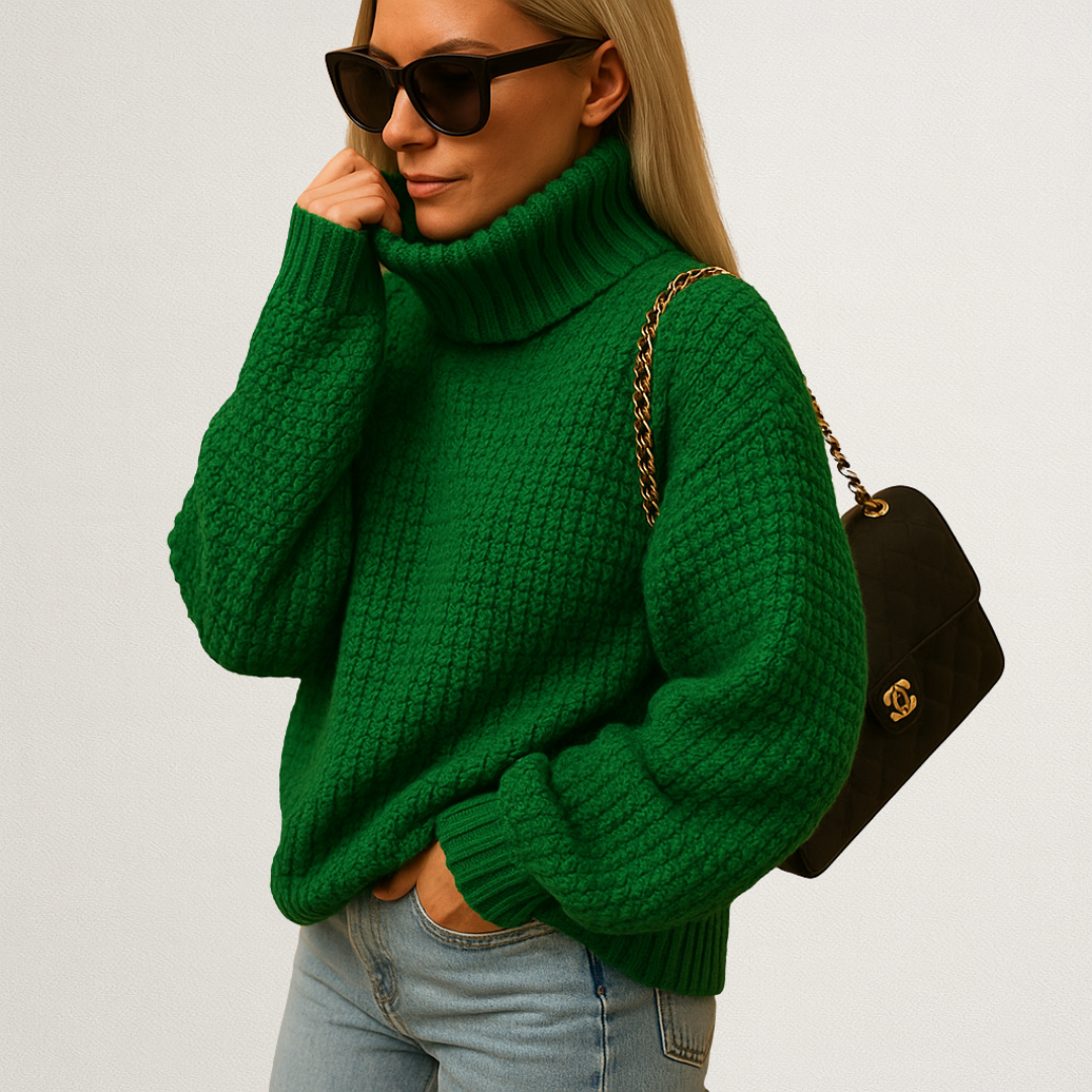 Ten damski sweter z golfem łączy ciepło z elegancką prostotą, tworząc idealną warstwę na jesień i zimę. Miękkie, grubsze dzianie sprawia, że sweter prezentuje się klasycznie i wygodnie na co dzień. To model, który łatwo dopasować do casualowych zestawów, biurowych stylizacji i wieczornych outfitów.