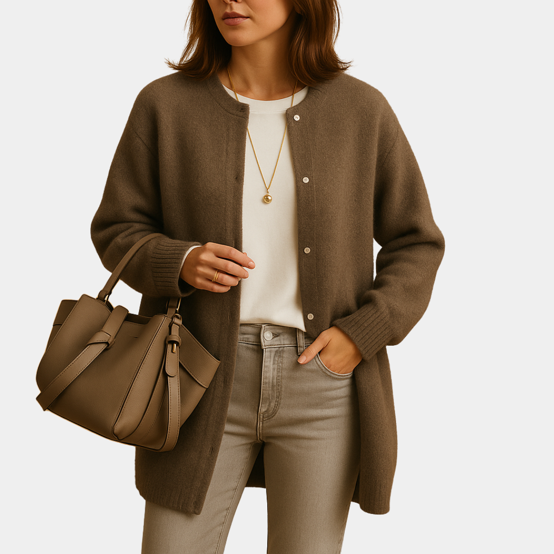 Poznaj damski kardigan z guzikami, który dzięki zapięciu z przodu nadaje każdej stylizacji wykończony wygląd. Jego prosty, klasyczny krój sprawdzi się zarówno podczas nieformalnych spotkań przy kawie, jak i spotkań z klientami. Załóż go, gdy powietrze się ochłodzi, i zachowaj elegancki wygląd przez cały dzień.
