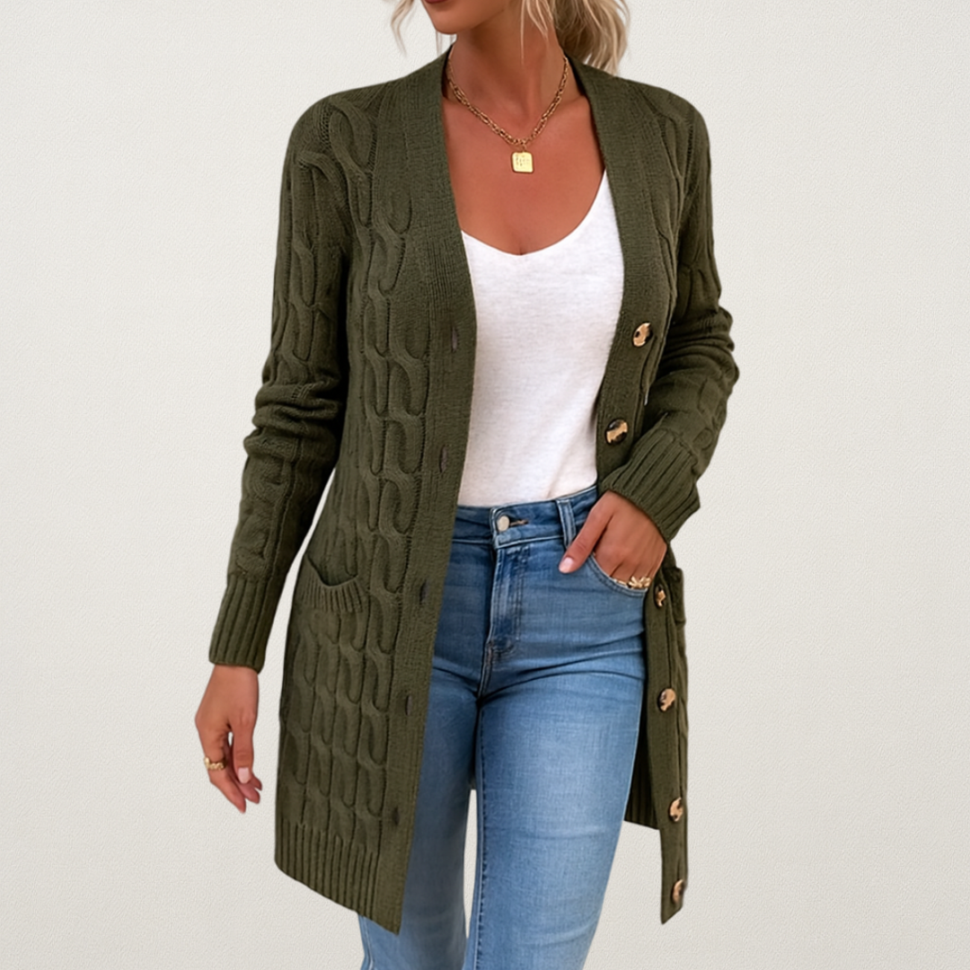 Mervavi | Damski kardigan z warkoczowym splotem i guzikami
