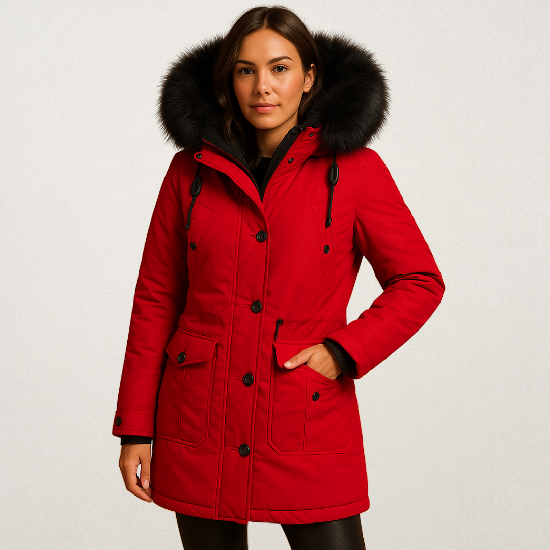 Mervavi | Długa wodoodporna kurtka zimowa z futrzanym kołnierzem dla kobiety