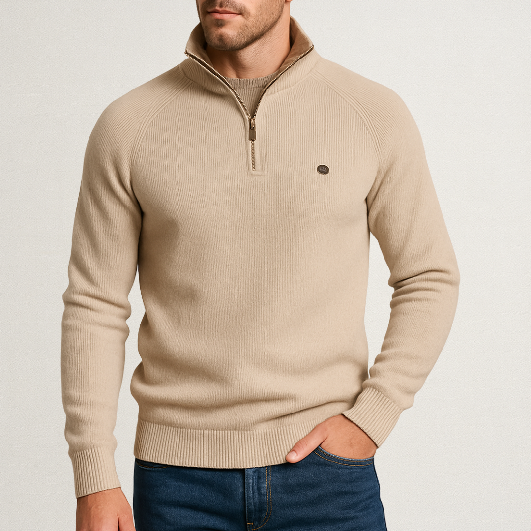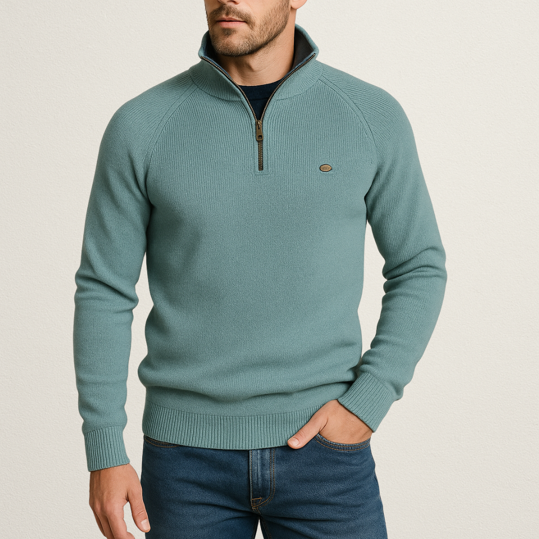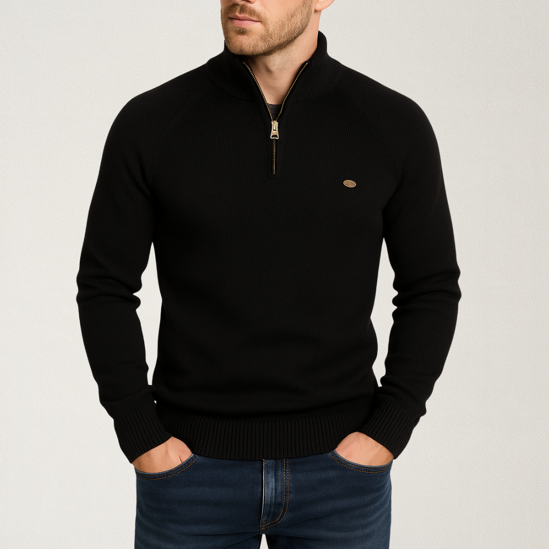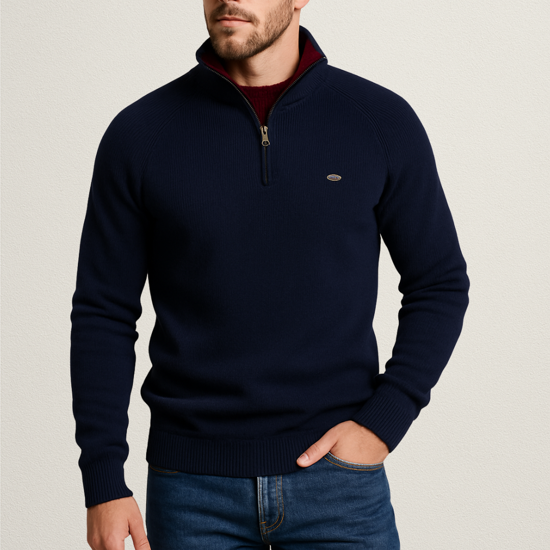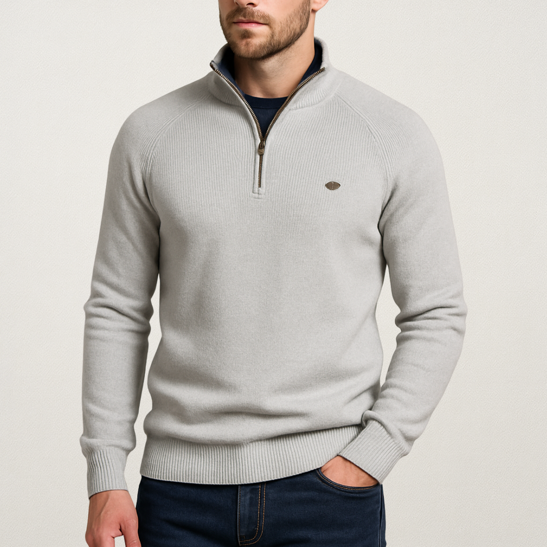 Męski sweter zapinany na zamek to doskonałe połączenie komfortu i ponadczasowej elegancji. Wykonany z miękkiej, przyjemnej w dotyku dzianiny, zapewnia ciepło i wygodę w chłodniejsze dni. Dzięki praktycznemu zamkowi błyskawicznemu możesz nosić go zarówno rozpięty, jak i zapięty pod szyję, idealny wybór do pracy, na spotkanie lub weekendowy spacer.