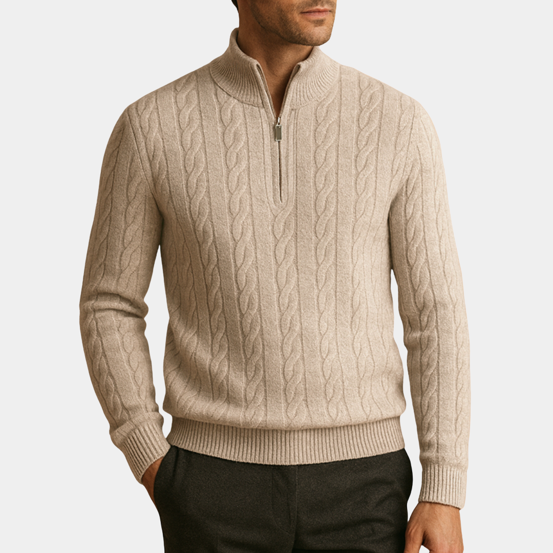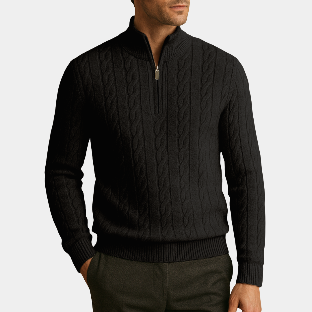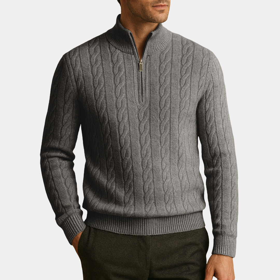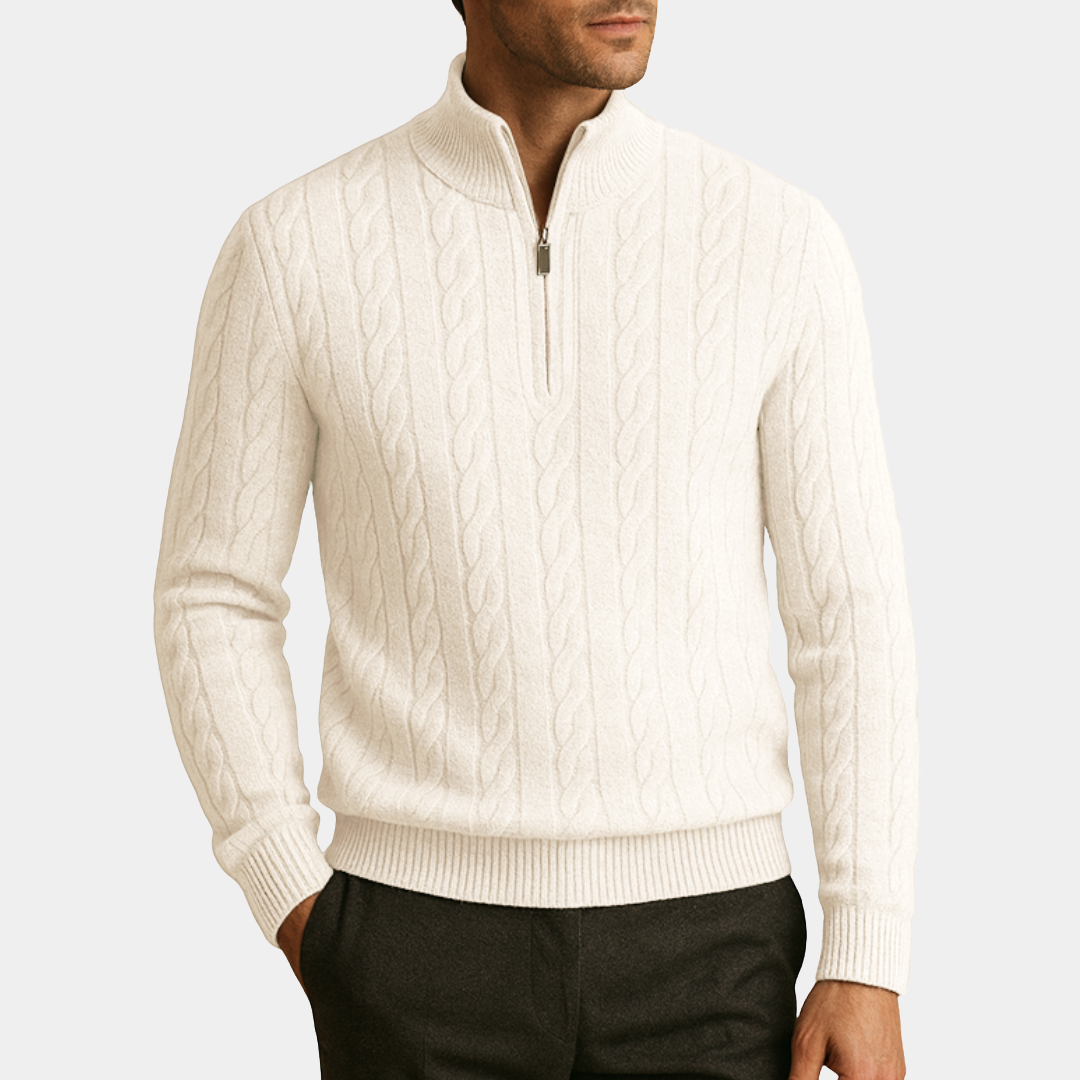 Mervavi | Męski sweter z prążkowanym półzamkiem